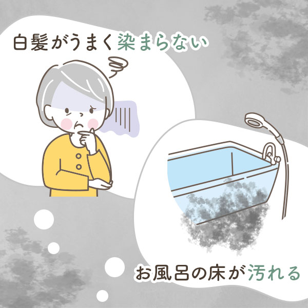 たしかに白髪がうまく染まらなかったり、お風呂に色が移ったりするのは困ります・・・